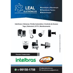LEAL ELETRÔNICOS ATUA NO SEGMENTO DA SEGURANÇA ELETRÔNICA INTERFONES CÂMERAS E CFTV PORTÕES ELETRÔNICOS FECHADURAS ELETRÔNICAS CONTROLE DE ACESSO TAGS CONTROLES PARA PORTÕES ASSISTÊNCIA TÉCNICA MANUTENÇÃO INSTALAÇÃO E MODERNIZAÇÃO