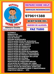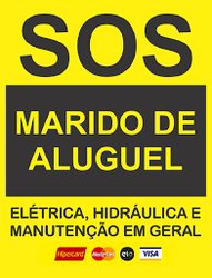 A SOS Marido de Aluguel é especializada em serviços elétricos,hidráulicos, gás e pequenos reparos.Entre os reparos na área hidráulica estão concerto de torneiras, registros,válvulas de descarga, vazamentos, entupimentos e instalações diversas. Na parte elétrica,propõe-se resolver de pequenos a grandes problemas na rede, além de tomadas e interruptores, chuveiros elétricos,ventiladores de teto,extensões,luminárias e refletores.Em sistemas de gás, instalação e manutenção de gás GLP ou Natural. Ainda montagens ,desmontagens de moveis, instalações de prateleiras, persianas, cortinas,secadores de teto,extensões de telefone,entre outros serviços.