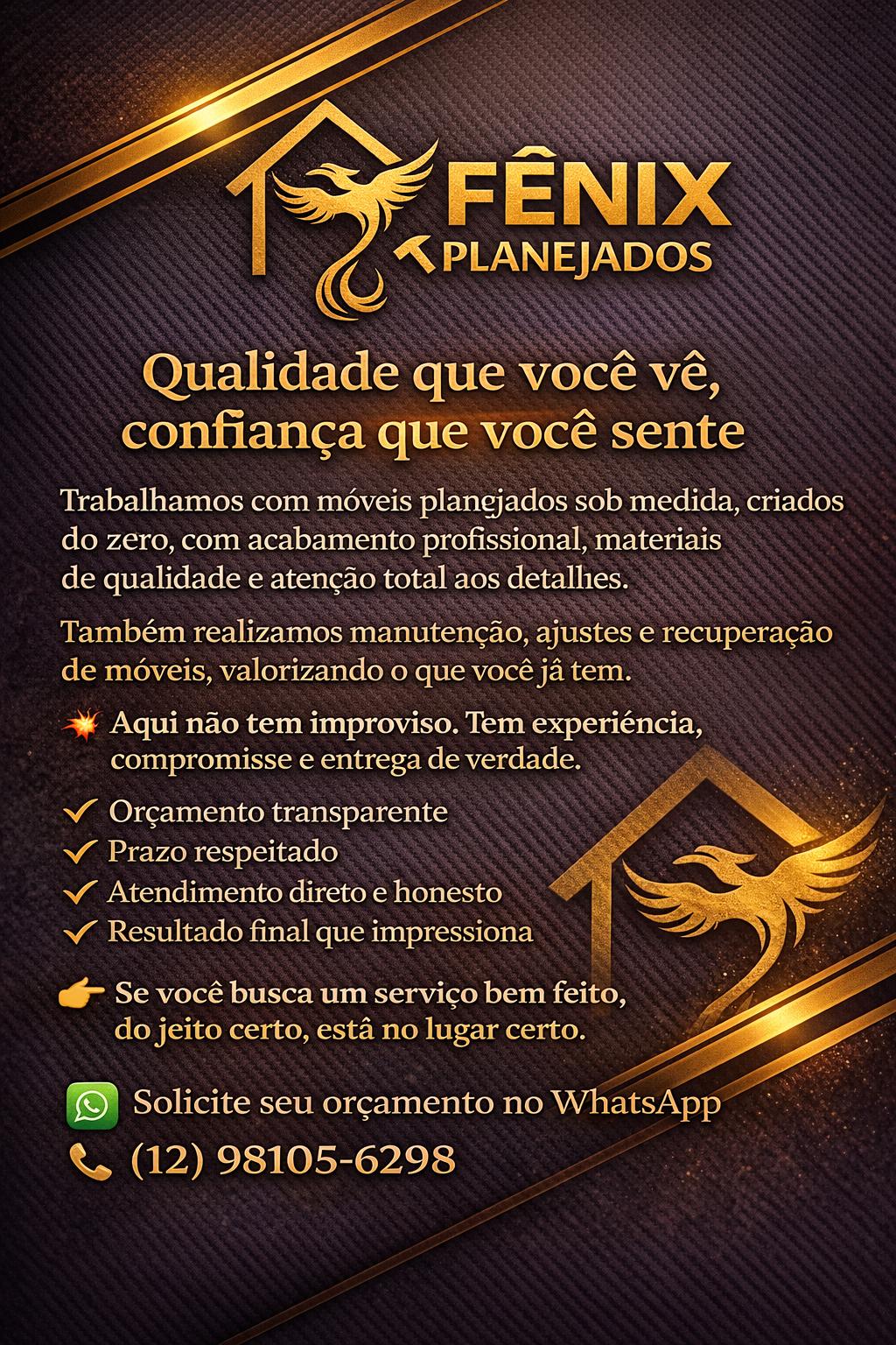 Nós da @FENIX_PLANEJADOS0.0 oferecemos os seguintes serviços 👇🏼👇🏼 1-Móveis planejados 2-Montagem e desmontagem de móveis 3-Reformas e reparos em móveis 4-Pequenas elétricas 5-Pinturas Somos de sjcampos, mais atendemos também em cidades vizinhas!!! Não perca tempo, entre já em contato e solicite seu orçamento com quem entende do assunto!! 12-981056298 Jonathan Henrique