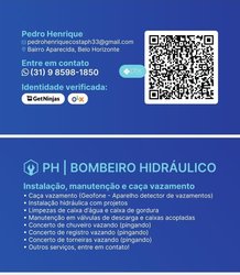 PH Bombeiro hidráulico . Caça vazamentos (Geofone), Instalação, Manutenção , Acabamentos , Pequenos reparos , Limpezas de Caixa d'água , Caixa de gordura e outros. Entre em contato: 031 9 8598-1850