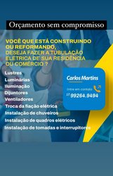 Sou eletricista residencial trabalho com pequenos serviços elétricos tipo Trocas de tomadas,trocas de disjuntores, instalação de ventilador de teto comum e de controle remoto Instalação de foto célula,sensor de presença...