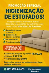 Higienização e Lavagem a Seco entre em contato e marque uma visita, ou nos envie uma foto do estofado que passamos o orçamento.