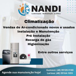 trabalhamos com venda, instalação, manutenção, higienização, pré instalação, contrato de manutenção, refrigeração, elétrica