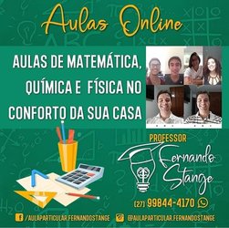 Venha se preparar e estudar Matemática, Física e Química de verdade com quem tem experiência em aulas particulares há mais de 20 anos. Preparatórios para ENEM, concursos, reforço escolar, vestibulares e pré medicina. Apenas R$ 43 por cada aula de 1h30min. Instagram: @aulaparticular.fernandostange Cel: 27-99844-4170