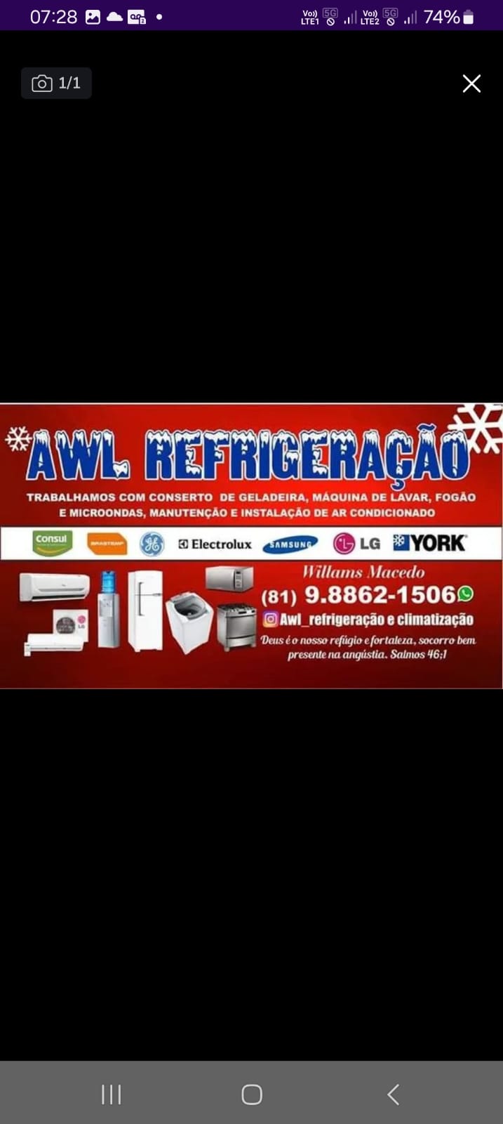 👉Sua Máquina de lavar,Geladeira,Ar condicionado Quebrou?? 💢98862-1506 ZAP ou ligue👉👉 J.AWL. Refrigeração 99735-0207 . Aceitamos Cartão Serviços com Garantia