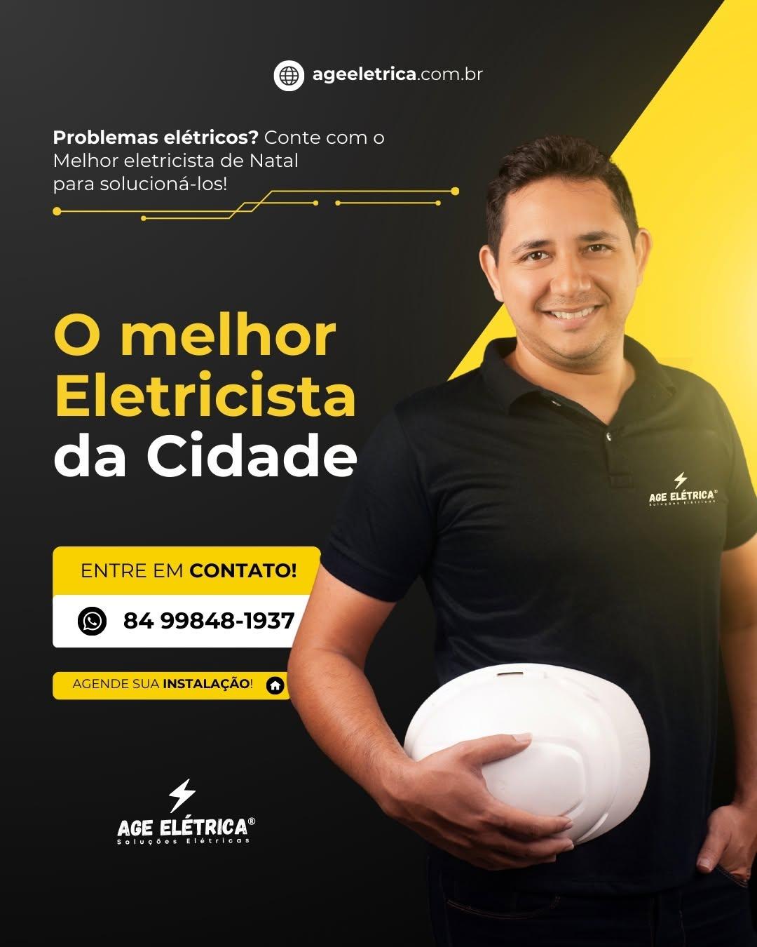 ocê está tendo problemas elétricos em casa ou no trabalho? ⚡ Nada pior do que ficar sem luz ou se preocupar com a segurança das instalações elétricas, não é mesmo? 😓 E sabemos que encontrar alguém de confiança para resolver isso pode ser um desafio! Mas a boa notícia é que você não precisa se preocupar mais! ✨ 📞 Entre em contato agora com o melhor eletricista de Natal! Na AGE Elétrica, oferecemos serviços rápidos, seguros e com total garantia de qualidade. Seja para pequenas manutenções ou grandes instalações, nossa equipe está pronta para te ajudar. 💡 Resolva seu problema elétrico hoje mesmo! Agende sua instalação ou manutenção pelo WhatsApp: (84) 99848-1937.