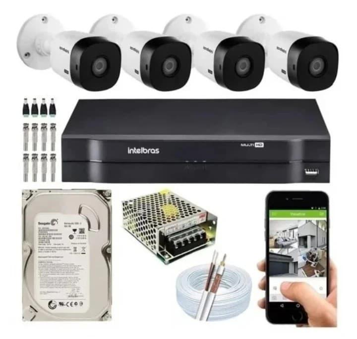 KIT CFTV Completo 4 Câmeras Intelbras CONTROLE DE ACESSO CENTRAL DE ALARME CENTRAL DE CHOQUE CERCA ELÉTRICA CONCERTINA MOTOR DE PORTÃO 10SEG