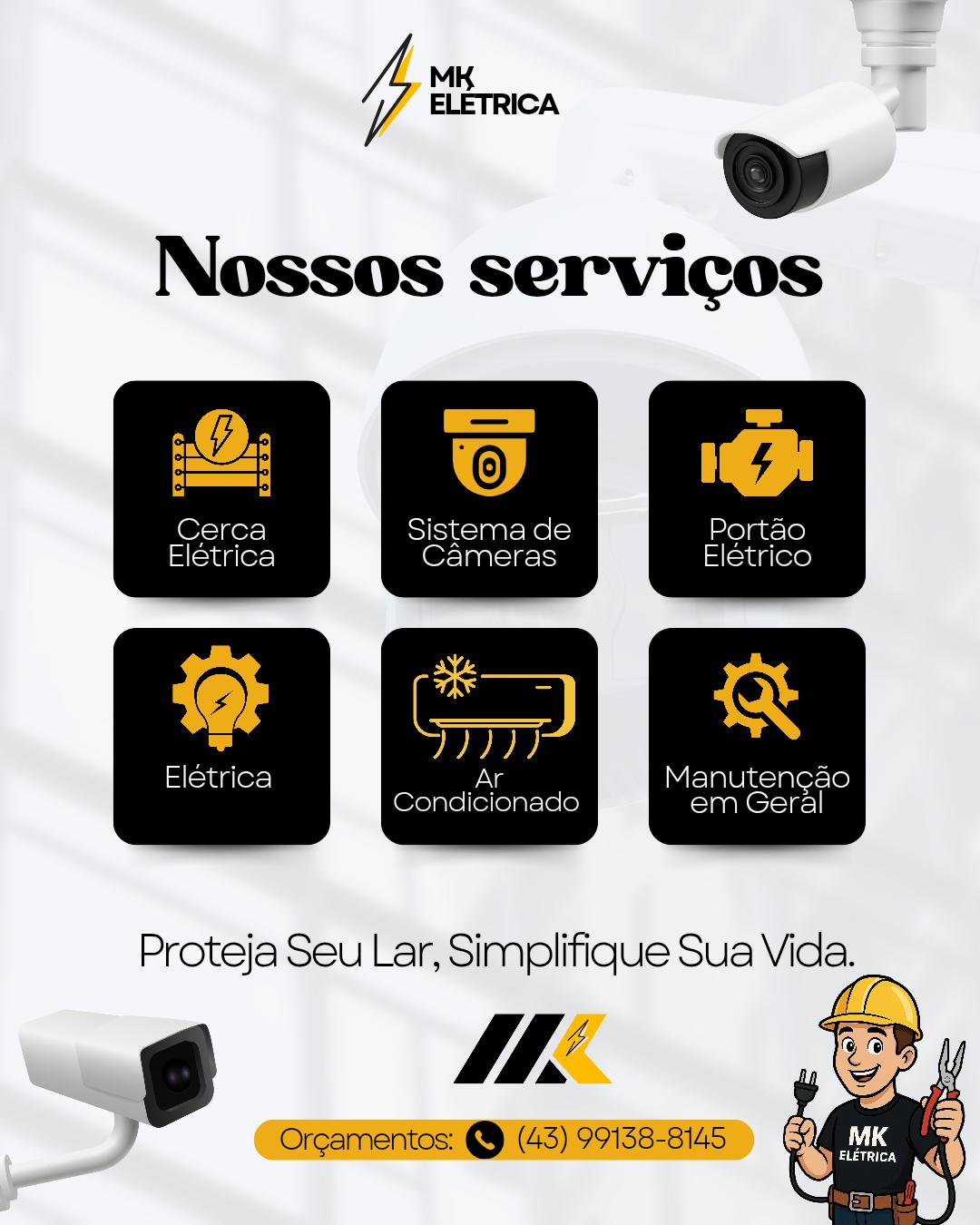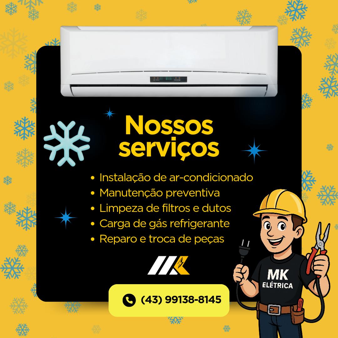 🔌 MK Elétrica & Ar Condicionado | Londrina Especialista em instalações elétricas residenciais e comerciais, ar condicionado, CFTV (câmeras de segurança), alarmes e automação. 💡 Profissionalismo, segurança e qualidade em cada serviço. 📞 Atendimentos rápidos e soluções eficientes para sua casa ou empresa.