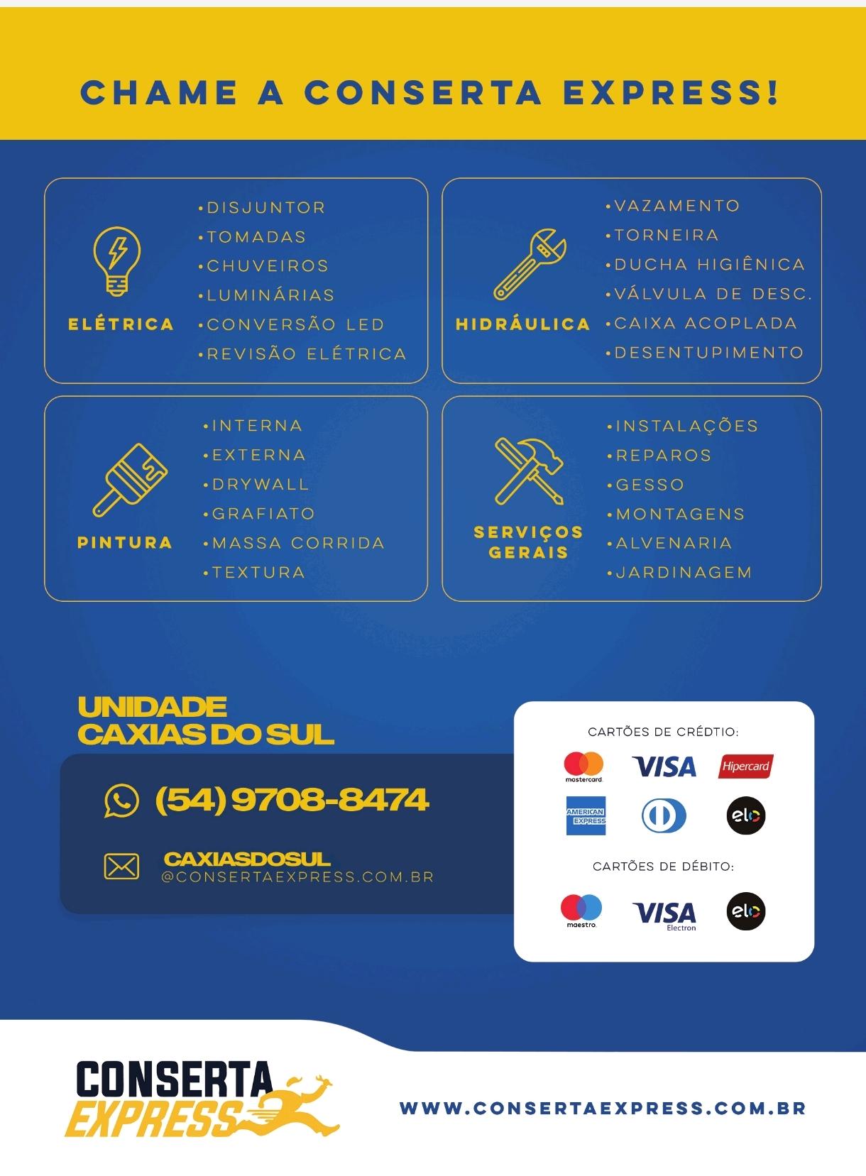 Precisando de serviço elétrico, hidráulico, pintura, construção civil e etc, chame a conserta express caxias do sul.