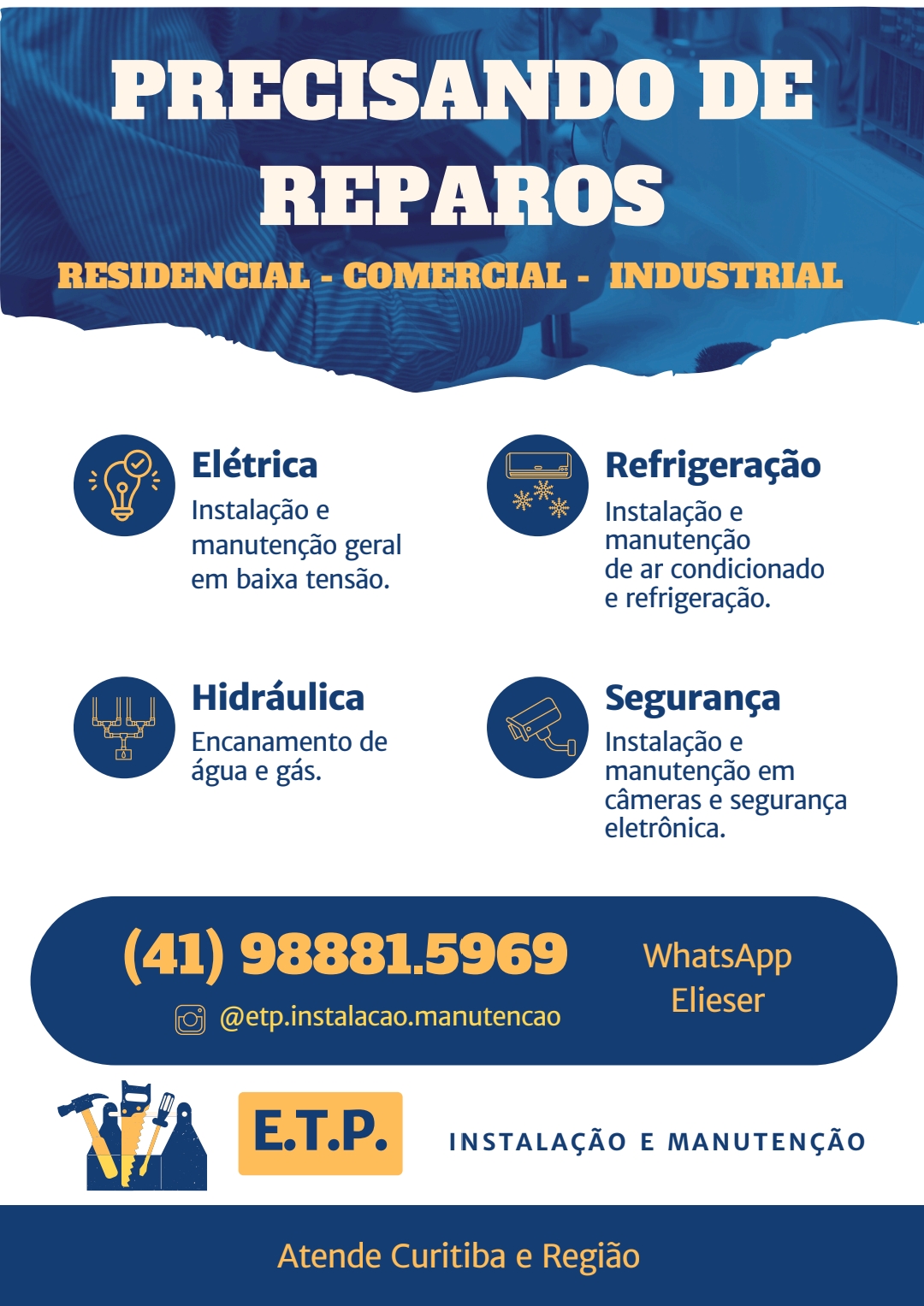 Serviços de instalação e manutenção elétrica Predial, comercial e industrial.