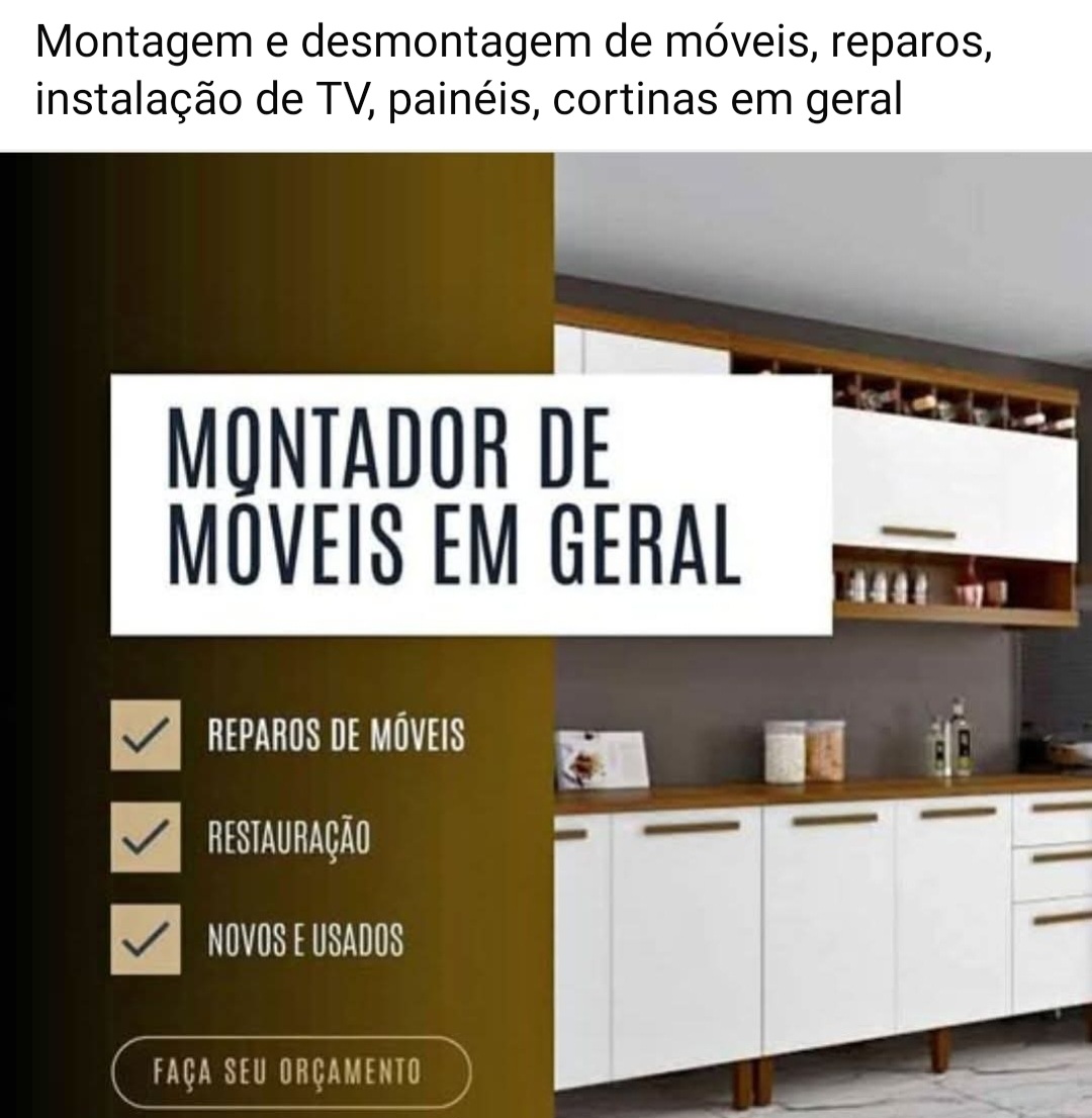 Montagem e desmontagem de móveis, reparos, instalação de TV, painéis, cortinas, pequenos reparos como marido de aluguel